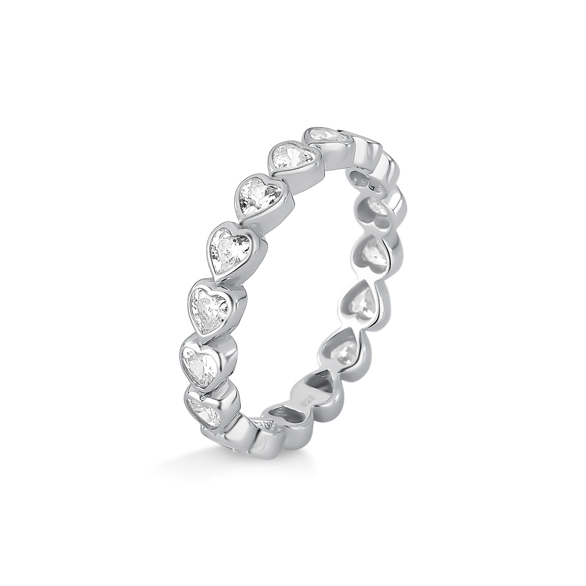 ALIANÇA ZIRCÔNIA HEART CRAVEJADO PRATA 925 BANHO EM RÓDIO - NÚMERO 19