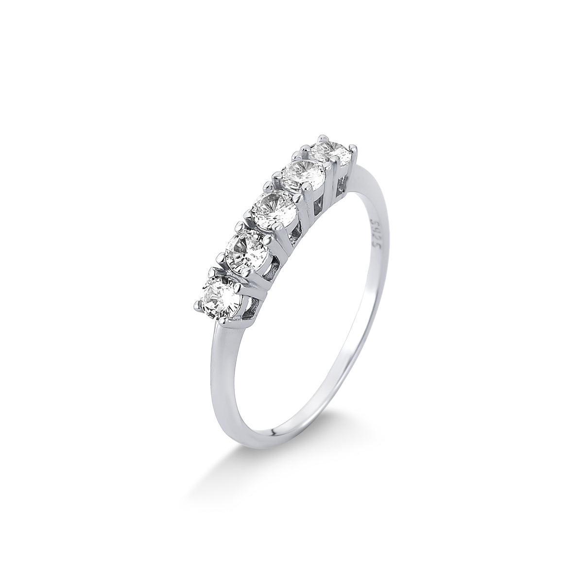 ANEL MEIA ALIANÇA CRAVEJADA CARRE PRATA 925 BANHO EM RÓDIO