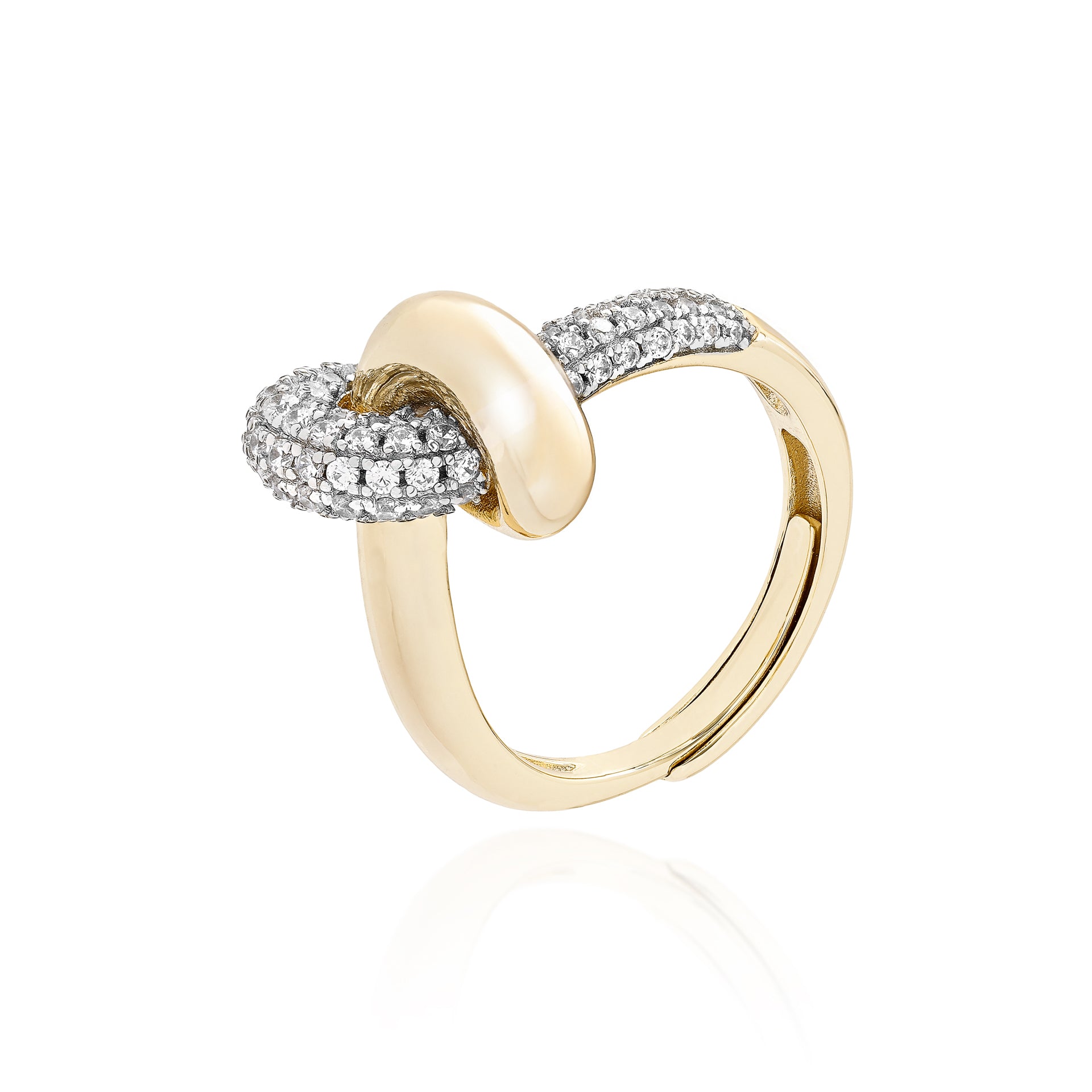 ANEL NÓ BANHO DUPLO CRAVEJADO - PRATA 925 BANHO EM OURO 18K - NÚMERO 18
