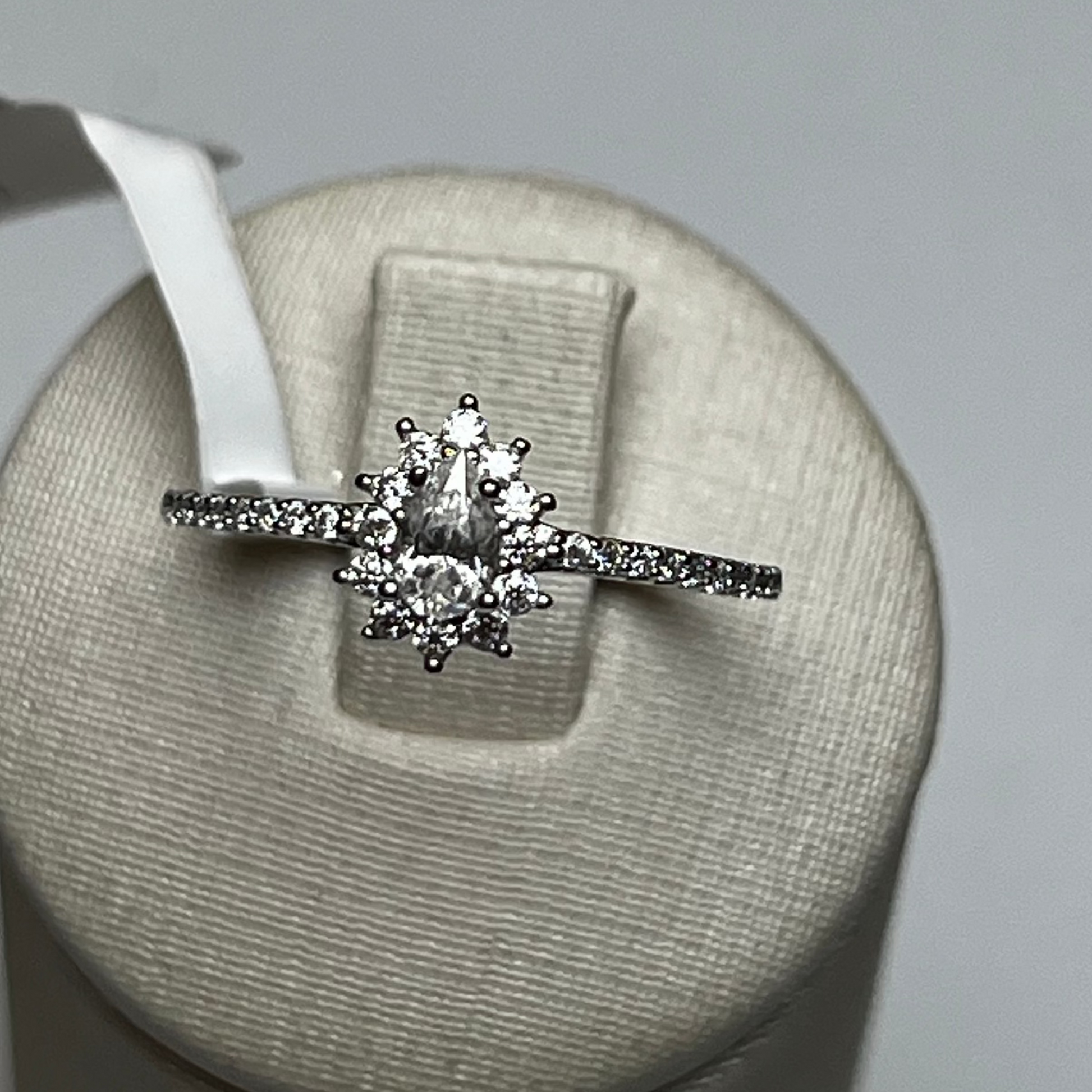 ANEL SOLITÁRIO GOTA CRAVEJADO EM MOISSANITE 0,1CT PRATA COM BANHO DE RÓDIO
