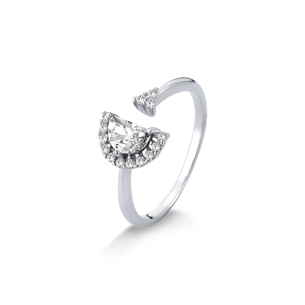 ANEL SOLITÁRIO MEIA PIZZA PRATA 925 BANHO EM RÓDIO