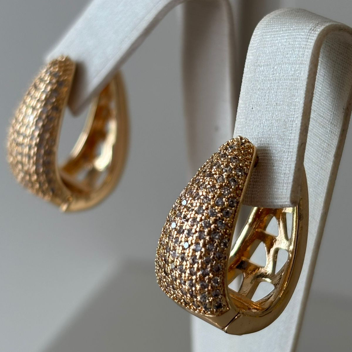 ARGOLA TRIANGULAR CRAVEJADA EM ZIRCÔNIAS