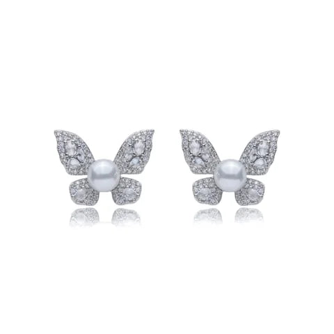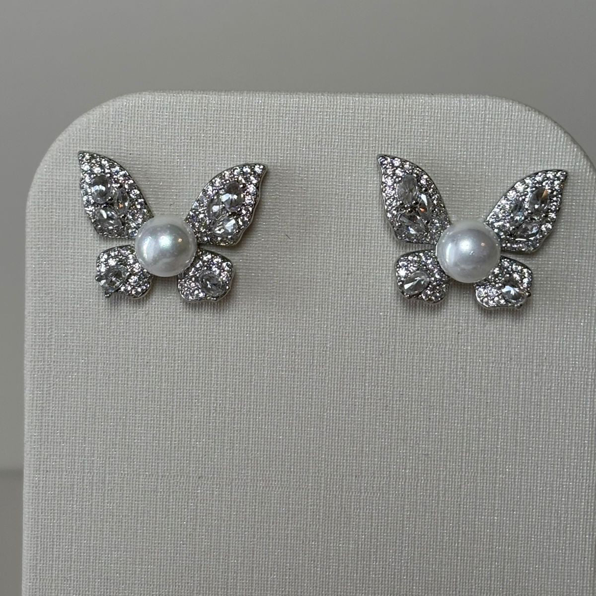 BRINCO BUTERFLY CRAVEJADO COM PÉROLA CENTRAL