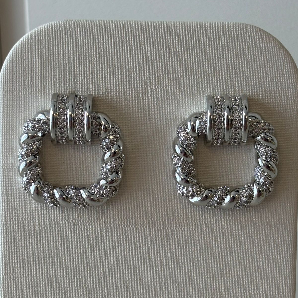 BRINCO CORDA ENTRELAÇADA CRAVEJADO EM RÓDIO