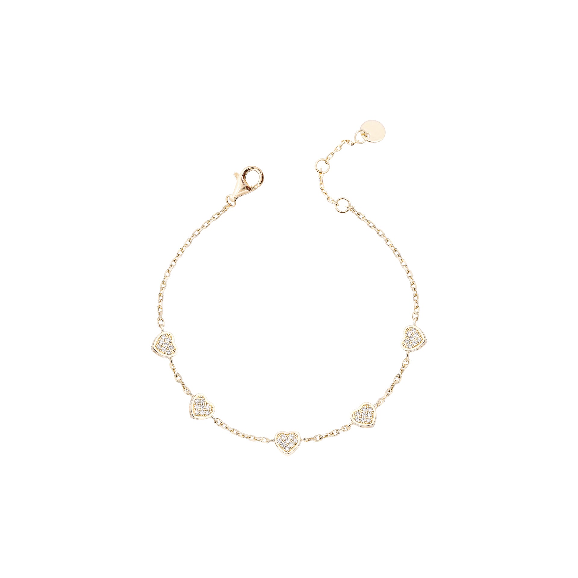 PULSEIRA ELOS PORTUGUESES CINCO CORAÇÕES CRAVEJADOS PRATA 925 - COM REGULAGEM